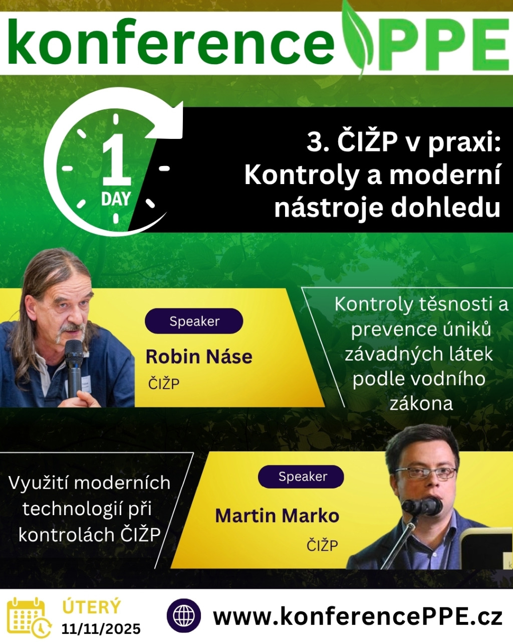 Třetí, závěrečný panel prvního dne konference Povinnosti v podnikové ekologii 2025 (PPE) nese název ČIŽP v praxi: Kontroly a moderní nástroje dohledu a zaměří se na to, jak moderní technologie i důsledná prevence pomáhají firmám předcházet problémům při kontrolách a zefektivňují inspekční činnost.