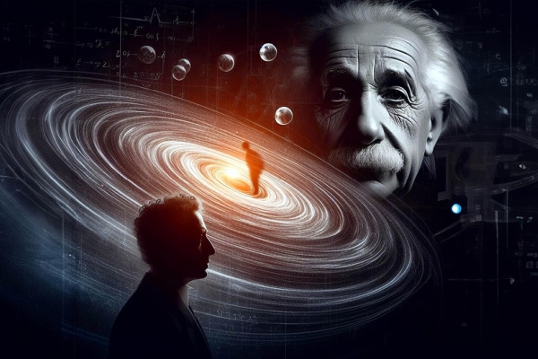 Einstein v téže době, kdy Planck a Bohr rozbíjeli jistoty klasické fyziky, přinesl další převratnou myšlenku: čas a prostor nejsou pevné a oddělené, ale tvoří jednu společnou strukturu – časoprostor – který se může ohýbat, rozpínat a zrychlovat. Slunce tedy nepřitahuje planety neviditelnou silou, jak si myslel Newton, ale svou hmotností zakřivuje prostor kolem sebe. A jak se pohybujeme tímto zakřiveným prostorem, mění se i čas samotný – může plynout pomaleji nebo rychleji, podle okolností a pozorovatele.